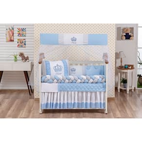 Kit Protetor Berço Coroa Trança Azul Claro Edredom