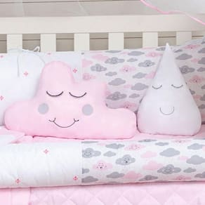 Informações Importantes:O produto já vai pronto para o uso, com o enchimento já incluso.Acompanha as peças conforme a descrição, não esta incluso o BerçoA cabeceira e as laterais do kit possuem zíper para retirar o enchimento, facilitando assim uma possível lavagem do produto. as cabeceiras em formato de nuvem ou coroa não possuem zíper TOTAL 11 PEÇAS 1 Cabeceira 0.57X0.37 mts1 Lateral 1.25X0.25mts1 Rolinho 1.25X0.12 mts 1 Lençol de cima 1.30X0.90 mts - 100% ALGODÃO1 Fronha 0.28x0.38 mts - 100% ALGODÃO1 Bando do mosqueteiro 1.40x0.20 mts1 Mosqueteiro 4.50x1.50 mts1 Edredom 1.30X0.75 mts1 Almofada nuvem 0.40x0.20 mts1 Almofada Gota 0,30 x 0,22 mts1 SAIA BOX 1,30 x 0,70 x 0,30 mtsObservações:- Produto com excelente qualidade de tecido e acabamento.- Possui zíper para remoção dos enchimentos.DESCRIÇÃO DAS PECAS :Tecido estampado: 100% AlgodãoTecido liso: 50% Algodão| 50% PoliésterLençol: 100% AlgodãoFronha: 100% AlgodãoEnchimento 100% PoliésterMosqueteiro 100% Poliamida Marca: L2m