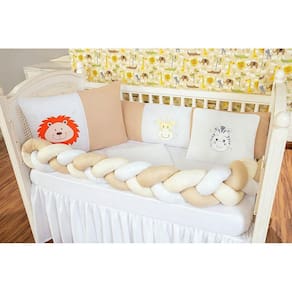 Este produto foi desenvolvido pensando no máximo conforto e bem estar do seu bebê. Por isso, ele é fabricado com materiais de alta qualidade. Tudo para garantir a segurança dos pequenos e tranquilidade para os pais.Características:- Material de alta qualidade- Produzido pensando na segurança do bebê- Produto regularizado pelas agências governamentais responsáveisEspecificações TécnicasProduto: Kit Protetor Berço Padrão Americano Selva Safari Leão 6 PçsMarca: L2MModelo: Kit para berço Nacional e AmericanoCor: CaquiGênero: Unissex Material:Tecido: 70% poliéster/ 30% algodãoEnchimento 100% poliésterMosqueteiro 100% poliamidaMedidas:1 cabeceira------------------0.65x0.40 mts1 lateral -----------------------1.25x0.25mts1 trança --------------------1.25x0.12 mts1 almofada -----------------0x25x0.25 mts1 fronha ---------------------0.28x0.38 mts 1 lençol com elástico inteiro---- 130cm x 70cm x 15cmInformações importantes:O produto já vai pronto para o uso, com o enchimento já incluso.Acompanha as peças conforme a descrição, não esta incluso o berçoA cabeceira e lateral do kit possuem zíper para retirar o enchimento, facilitando assim uma possível lavagem do produto.Trança deve ser lavada a secoA saia não acompanha Marca: L2m