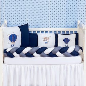Kit berço 6 peças- o melhor da categoria1 cabeceira------------------0.65x0.40 mts1 lateral -----------------------1.25x0.25mts1 trança --------------------1.25x0.12 mts1 almofada -----------------0x25x0.25 mts1 fronha ---------------------0.28x0.38 mts 1 lençol com elástico inteiro---- 130cm x 70cm x 15cmDescrição das pecas :Tecido: 70% poliéster/ 30% algodãoEnchimento 100% poliésterMosqueteiro 100% poliamidaInformações importantes:O produto já vai pronto para o uso, com o enchimento já incluso.Acompanha as peças conforme a descrição, não esta incluso o berçoA cabeceira e lateral do kit possuem zíper para retirar o enchimento, facilitando assim uma possível lavagem do produto.Trança deve ser lavada a secoA saia não acompanha Marca: L2m