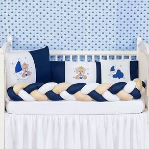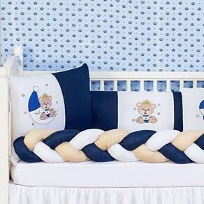 Este produto foi desenvolvido pensando no máximo conforto e bem estar do seu bebê. Por isso, ele é fabricado com materiais de alta qualidade. Tudo para garantir a segurança dos pequenos e tranquilidade para os pais.Características:- Material de alta qualidade- Produzido pensando na segurança do bebêEspecificações TécnicasProduto: Kit Protetor Berço Padrão Americano Ursinho Lua Marinho6 PçsMarca: L2MModelo: Kit para berço Nacional e AmericanoCor: Azul MarinhoGênero: MasculinoMaterial:Tecido: 70% poliéster/ 30% algodãoEnchimento 100% poliésterMosqueteiro 100% poliamidaMedidas:1 cabeceira------------------0.65x0.40 mts1 lateral -----------------------1.25x0.25mts1 trança --------------------1.25x0.12 mts1 almofada -----------------0x25x0.25 mts1 fronha ---------------------0.28x0.38 mts 1 lençol com elástico inteiro---- 130cm x 70cm x 15cmInformações importantes:O produto já vai pronto para o uso, com o enchimento já incluso.Acompanha as peças conforme a descrição, não esta incluso o berçoA cabeceira e lateral do kit possuem zíper para retirar o enchimento, facilitando assim uma possível lavagem do produto.Trança deve ser lavada a secoA saia não acompanha Marca: L2m