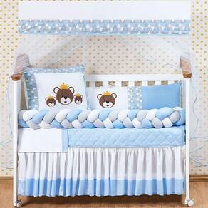 Kit Protetor Berço Trança Americano Urso Rei Azul 11 peças