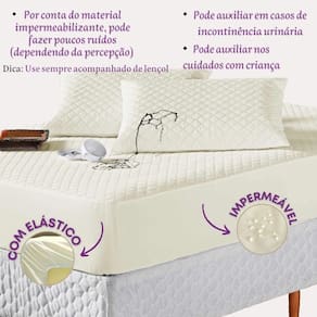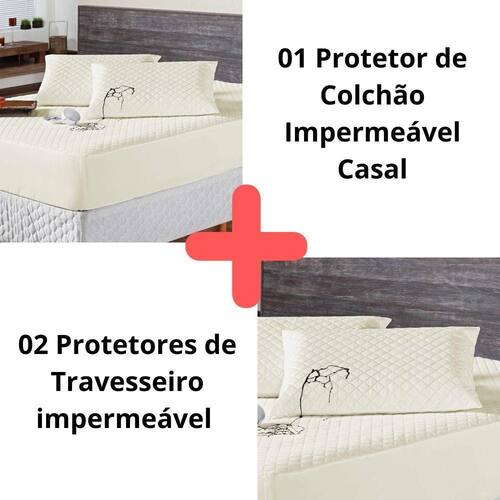 Kit Protetor Colchão Impermeável Casal +2 Capas Travesseiro Palha O KIT IMPERMEÁVEL MATELADO é o um combo indispensável para sua cama. O protetor e o porta travesseiros impermeável irão proteger seu colchão e travesseiro de eventuais acidentes com bebidas, líquidos, sujeira em geral e também da transpiração noturna, o que poderá proporcionar maior vida útil para seu enxoval.