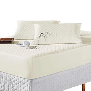 CONTEÚDO DA EMBALAGEM - 01 Protetor de colchão CASAL: 1,88 m x 1,38 m x 40 cm - 02 Porta Travesseiros: 70 cm x 50 cm