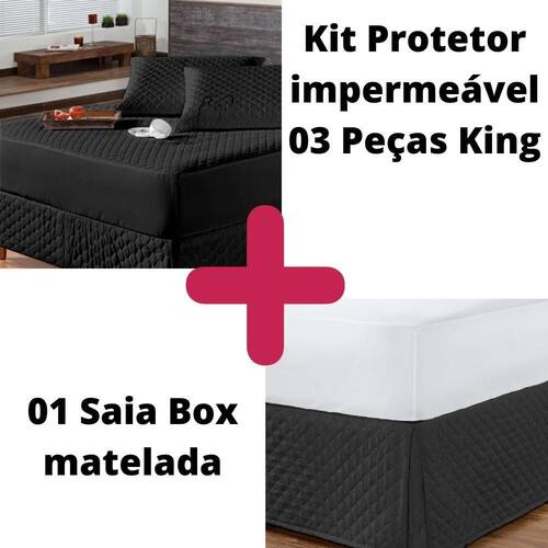 Kit protetor colchão king + 2 capa de travesseiro impermeável + saia box preto