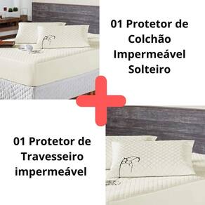 Kit Protetor Colchão Solteiro + Capa Travesseiro Impermeável Palha O KIT IMPERMEÁVEL MATELADO é o um combo indispensável para sua cama. O protetor e o porta travesseiros impermeável irá proteger seu colchão e seu travesseiro de eventuais acidentes com bebidas, líquidos, sujeira em geral e também da transpiração noturna, o que poderá proporcionar maior vida útil para seu enxoval.
