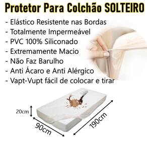 Kit protetor colchão solteiro impermeável lençol + fronha Neste kit conteúdo: 1 protetor casal com elastico cor bege. 1 fronha protetor de travesseiro O protetor para colchão siliconizado com elástico senior care, protege totalmente o colchão do suor, umidade e líquido, evita a proliferação de ácaros e fungos preservando o conforto e protegendo sua saúde. Ideal para incontinência urinária. Toque suave. Diferenciais: - não esquenta e não faz barulho; - antialérgico; - antiácaro; - lavável; - impermeável; - com elástico. Indicações - idosos; - bebes, crianças desfraude ; - pne's portadores de necessidades especiais; - incontinência urinária; - hotéis, pensões, casa de repouso, clínicas e hospitais. Tamanho: Lençol solteiro 90 l x 190 c x 20 a cm; Composição: confeccionado 100% em plástico pvc siliconizado com elástico, sistema vapt-vupt. Fronha 70cm x 52cm. Composição: 100% pvc siliconado. com zipper lateral facilitando a colocação. cor: bege. Conteúdo: 1 protetor solteiro com elastico cor bege. 1 fronha siliconada - o material é plástico Não, o material pela senior care na confecção do nosso modelo vapt vupt é o pvc siliconizado. - quando forrado por cima escorrega Depende muito do tecido, mas se for algodão não escorregará. - faz muito barulho Não, eles são confeccionados em pvc siliconizado além de dar um toque muito macio possibilita que o lençol seja extremamente silencioso. Marca: Não Informado