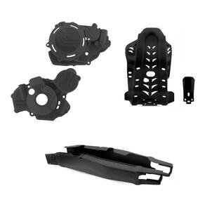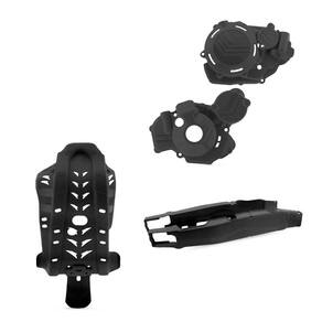 Este kit completo inclui protetores de balança, protetores de tampas laterais e protetor de motor, todos projetados para proteger as partes mais vulneráveis da motocicleta contra pedras, detritos e impactos durante a pilotagem.