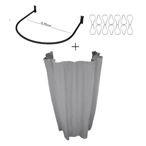 Kit provador cortina blecaute e arco 70x70 cinza Cortina provador de roupas 01 cortina nas medidas: 2,80m largura x 1,90m altura sem divisão Tecido: blackout / 100% poliéster Cor: cinza Acompanha 14 ganchos tipo pera e ilhós cromados Atenção: essa cortina não é em pvc, e sim tecido 100% poliéster