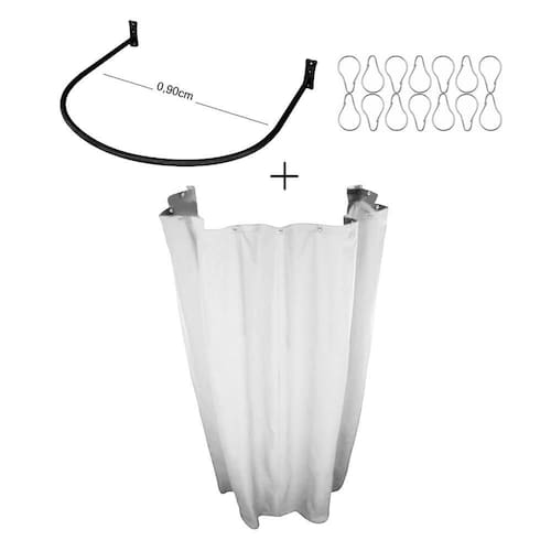 Kit provador cortina branca e arco 70x70 para loja de roupas Cortina provador de roupas 01 cortina nas medidas: 2,90m largura x 1,90m altura sem divisão Tecido: cetim vison / 100% poliéster Cor: branco Acompanha 14 ganchos tipo pera e ilhós cromados