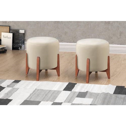 Kit Puff Banqueta Thor Luxo Madeira Maciça Premium Suede Bege Claro