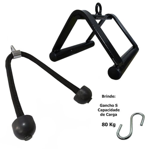 Kit puxadores feitos em aço, com soldas reforçadas e ótimo acabamento. Puxador corda tríceps feito em com corda trançada, reforçado e alta qualidade, alça de encaixe em aço cromado e apoio de mão em pvc, maciez nos exercícios evitando calos. Todos feitos em alta qualidade para serem usadas nos mais diversos aparelhos de sua academia, vai tornar seu treino mais completo, produto nacional e com garantia.