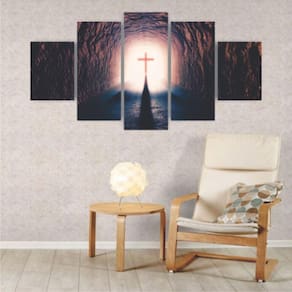 Kit Quadros Religioso Caminho Da Salvação Cruz Sala Quarto Kit 5 quadros decorativos mosaicos Material: Quadros produzido em mdf - dimensões: Tamanho total do quadro montado na parede: 115cm x 60cm - 1 peça central com 60x22cm - 2 peças intermediárias: 22x50cm - 2 peças laterais: 22x30cm. - deixar espaçamento entre as peças na hora da instalação = 1 cm -informações técnicas: O quadro não precisa de moldura, estão pronto para pendurar na parede. São feitos em adesivos fosco e impressos em alta qualidade. Aplicado em mdf com espessura de 3mm. - instalação: Não é necessário furar a parede para instalação, pois, enviamos fitas 3m com grande poder adesivo para facilitar a instalação. É necessário na hora da instalação posicionar o quadro em 1cm de largura entre eles para melhor qualidade de visualização. Limpe o local que vai ser instalado o quadro com um pano úmido, após secar o local, visualize como Vai ser o alinhamento, e retire a proteção da fita dupla face parte verde da fita e pressione No lugar desejado para a fixação. - limpeza após instalação: A limpeza pode ser realizada apenas com um pano seco macio, se desejar pode ser úmido porém sem conter álcool ou produtos químicos. -demais dúvidas estamos à disposição, basta nos chamar no campo mensagens que estamos aqui para melhor atendê-los : Boas compras