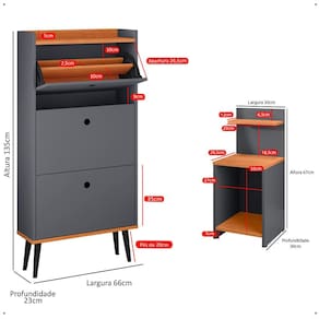 Kit Quarto 2 Mesas Cabeceira Mesinha Fantasy Lateral Cama Sapateira Vertical Dark Organizadora Calçados Unissex Cinza/Cinamomo - Lojas RPM