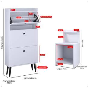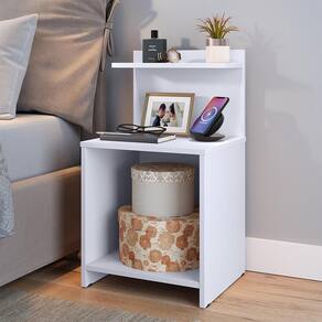 A Mesa de Cabeceira conta com uma prateleira suspensa e um nicho aberto, atributos essenciais para exibir objetos decorativos ou organizar itens de uso diário. Já a Sapateira possui gavetas basculantes com amplo espaço para a organização de calçados, mantendo tudo em seu devido lugar.