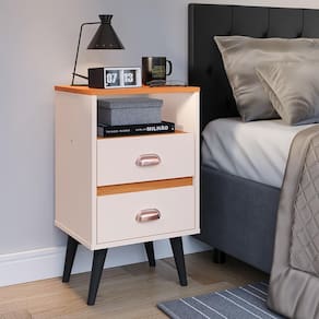 A Mesa de Cabeceira Classic oferece duas gavetas, nicho e tampo espaçoso, ideal para decoração e organizar itens do dia a dia.