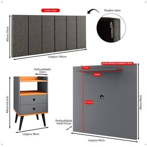 O conjunto é formado por 2 Mesas de Cabeceira Dream, 1 Painel Star e 1 Cabeceira Suspensa Júlia.