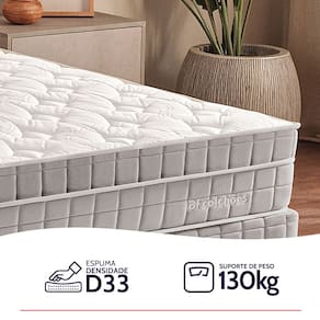 Estrutura em madeira, espuma viscoelástica (NASA), espuma D33, molas ensacadas, revestimento em couro sintético.Vendido e entregue por Bf Casa
