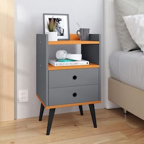 As Mesas de Cabeceira apresentam um design retrô e pés plástico resistente. Possuem duas gavetas amplas e um nicho aberto, ideais para guardar objetos pessoais ou itens decorativos. Estrutura sólida, excelente acabamento e visual que harmoniza com diferentes estilos de decoração.