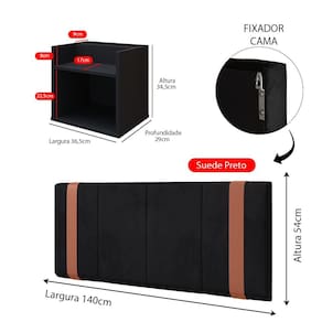 Com um design moderno e funcional, este conjunto combina sofisticação e praticidade, proporcionando conforto e estilo ao seu lar. As mesas de cabeceira são ideais para otimizar o espaço, facilitando a organização de objetos pessoais. A cabeceira, por sua vez, adiciona um toque de requinte e modernidade, destacando-se pelos detalhes laterais em corino que elevam a decoração do ambiente.
