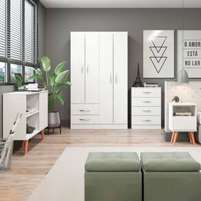 Guarda-Roupa Solteiro com 4 Portas 2 Gavetas 105x179cm MDP Branco Menu M?veis