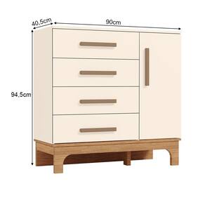 4 gavetas com corrediças metálicas + 1 porta com prateleira interna