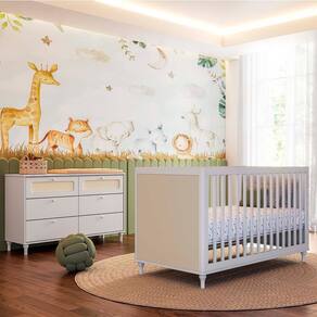 O Kit Quarto Infantil Rattan oferece uma solução completa e funcional para o espaço dos pequenos. Ele inclui três peças essenciais para organizar e decorar o ambiente: o Berço Americano, que proporciona conforto e segurança para o bebê, a Cômoda com 6 gavetas, ideal para armazenar roupas e acessórios, e o Guarda-Roupa Rattan com 3 portas e 2 gavetas, oferecendo amplo espaço para organizar todo o enxoval e demais itens essenciais. Feito com acabamento em Branco Fosco, o design deste conjunto é moderno e elegante, adaptando-se facilmente a diversos estilos de decoração.