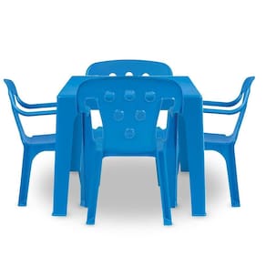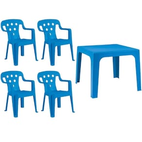 Kit Quatro Cadeiras Plásticas com Mesa Infantil Azul MOR