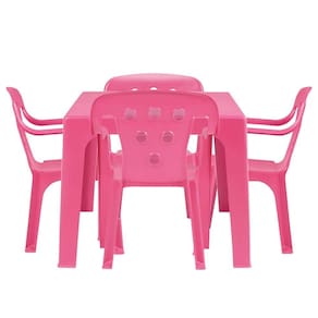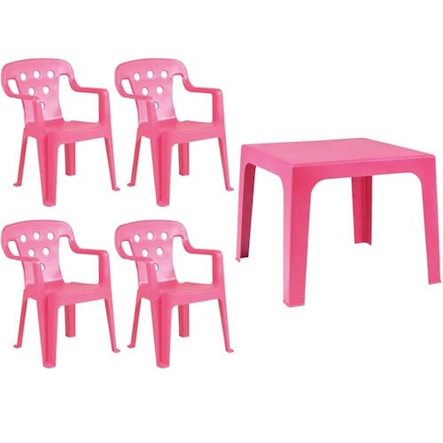 Kit Quatro Cadeiras Plásticas com Mesa Infantil Rosa MOR