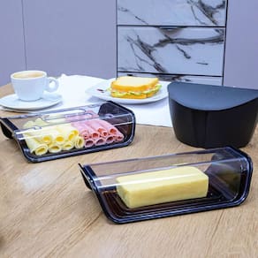 Kit Queijeira e Manteigueira Uz Preto com Tampa Acrílica Porta Frios Mesa Posta.
