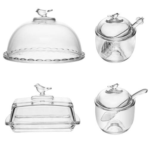 Kit Queijeira + Manteigueira + Meleira + Açucareiro de Cristal Bird Wolff - Itens Inclusos