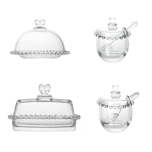Kit Queijeira + Manteigueira + Meleira + Açucareiro de Cristal Coração Lyor - Na sua casa!