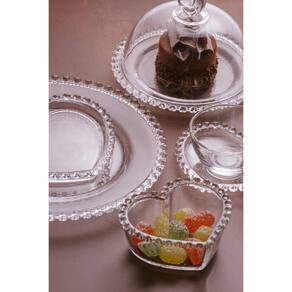 Kit Queijeira + Manteigueira + Meleira + Açucareiro de Cristal Coração Lyor - Itens Inclusos01 Queijeira (Diâmetro x Altura): 19,5 x 13 cm.