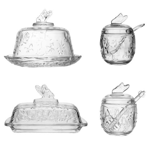 Kit Queijeira + Manteigueira + Meleira + Açucareiro de Cristal New Butterfly Lyor - Itens Inclusos