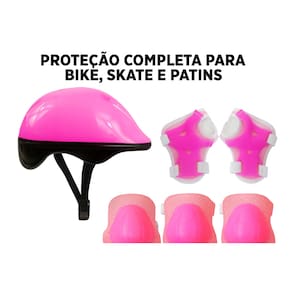 FICHA TÉCNICA:Idade: Acima de 06 (seis) anosContéudo: 01 capacete01 par de joelheiras01 par de cotoveleiras01 par de munhequeirasCor: RosaTamanho do capacete: M (circunferência: 55-59 cm)