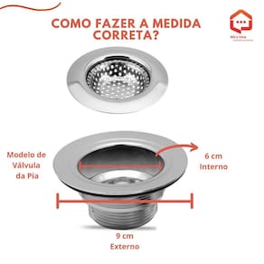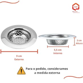 Kit ralo de pia - aço inoxidável 9 cm Tamanho: 9cm Nosso empenho é procurar o que há de mais atual e funcional no mundo culinário e para organização da sua casa, priorizando sempre a qualidade e a versatilidade dos produtos. Esse kit contém 2 ralos de pia inox de 9 cm. Para as medidas consideramos a medida externa do ralo Verifique a medida antes de comprar. Esse ralo serve na válvula que mede internamente 6 cm e externamente 9 cm. Chapa de inox resistente, serve para válvulas na medida 3.1/2 x 1.1/2. Não enferruja e ainda dá um toque elegante na sua pia. Ajuda para que não entre sujeiras e resto de comida no seu encanamento. A borda larga proporciona o acabamento perfeito e maior vedação da sua pia. Marca: Não Informado Ean: 7890689057982