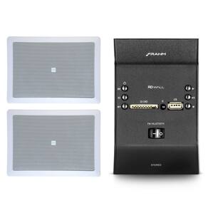 Complementando o sistema, o kit inclui duas caixas de som retangulares de embutir de alto desempenho. Estas peças são construídas com um design de duas vias (alto-falante de seis polegadas e tweeter direcionável de uma polegada), garantindo uma reprodução sonora de alta qualidade, clara e com excelente fidelidade, abrangendo uma ampla faixa de frequências. São projetadas com materiais resistentes à oxidação e um visual elegante que se integra perfeitamente ao teto ou parede, tornando-as quase imperceptíveis. A instalação é simplificada, proporcionando uma solução durável e com ótimo desempenho acústico para projetos de som ambiente.