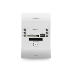 O Módulo Amplificador de Parede é embutido e discreto, funcionando como o centro multimídia. Oferece conexão sem fio (streaming), rádio FM, USB/SD e entrada auxiliar, sendo controlado por painel touch ou controle remoto.