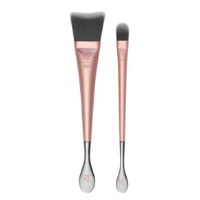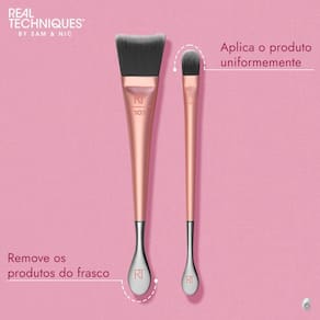 Com o Kit Real Techniques Skincare Brush Duo, não há necessidade de colocar as mãos diretamente no frasco e depois no rosto, proporcionando uma aplicação de skincare mais higiênica e uma preparação mais suave para maquiagem.