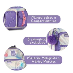 A Mochila Rebecca Bonbon RB27020 é o grande destaque deste kit. Confeccionada em PVC holográfico de alta resistência, apresenta um brilho único que reflete diferentes tons de acordo com a luz, tornando-a um verdadeiro acessório fashion. O compartimento principal é espaçoso e conta com divisórias exclusivas para notebook e tablet, garantindo praticidade e segurança para os eletrônicos. Na parte frontal, possui dois bolsos funcionais - um com zíper e outro com fechamento magnético - além de um compartimento extra com divisórias internas, perfeito para manter os materiais sempre organizados. Os bolsos laterais telados são ideais para garrafinhas, e o bolso antifurto traseiro traz ainda mais segurança. Detalhes como os patches emborrachados e atoalhados, o logo RB metalizado, o chaveiro triplo com pompom de orelhinhas e os puxadores personalizados tornam essa mochila um item exclusivo e sofisticado. O conforto também está garantido graças às alças acolchoadas e ajustáveis, à alça de mão reforçada e à alça carona para acoplar na mala de viagem. A Lancheira Rebecca Bonbon RB27018 segue o mesmo design holográfico da coleção, garantindo um visual totalmente coordenado. Espaçosa e funcional, possui revestimento térmico interno que mantém os alimentos frescos por mais tempo, além de um bolso frontal prático para pequenos itens. Com três opções de uso - alça de mão, alça tiracolo regulável e alça carona para acoplar na mochila ou mala - oferece toda a versatilidade que as meninas precisam no dia a dia. Completando o kit, o Estojo Box Rebecca Bonbon RB27019 é a escolha perfeita para quem ama organização. Comporta até 36 lápis em elásticos individuais e ainda possui um estojo interno separado com fechamento por zíper. Dimensões aproximadas: Mochila: 44x33x14cm Lancheira: 20x24x14cm e Estojo; 22x14x06cm Esse kit completo é muito mais do que materiais escolares: é um conjunto premium que transmite estilo, praticidade e identidade. A linha Rebecca Bonbon foi pensada para meninas que desejam expressar sua personalidade e carregar consigo um acessório que vai além da sala de aula, acompanhando também momentos de lazer, viagens e passeios. Marca: Não Informado Ean: 7795028489533