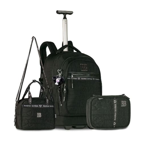 Esse kit Rebecca Bonbon é simplesmente incrível para a volta às aulas A mochila RB27000 tem espaço de sobra para cadernos, livros e até notebook e tablet, tudo bem organizado com compartimentos internos e quatro bolsos na frente. Pode ser Utilizado tanto no carrinho, com rodinhas resistentes e puxador de metal, quanto nas costas, com alças acolchoadas super confortáveis. A lancheira RB27003 completa o look com muito charme. Toda térmica, ela mantém a comida na temperatura ideal e pode ser carregada de várias formas: na mão, no ombro ou presa na mochila pela alça carona. E para fechar, o estojo box RB27004 é perfeito para quem ama organização: cabe até 100 itens, tem 36 elásticos internos e um estojo menor com zíper para deixar tudo no seu lugar. Um kit completo, moderno e cheio de estilo, que vai fazer sucesso na escola Dimensões aproximadas: Mochila: 48x35x19cm Lancheira: 20x24x14cm Estojo: 22x16x6cm Marca: Não Informado
