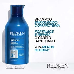 Shampoo Redken Extreme: Limpa suavemente os cabelos, removendo as impurezas e preparando os fios para receber os tratamentos.