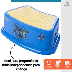 Facilite o dia a dia do seu pequeno com esse kit completo da Patrulha Canina! O redutor de assento acolchoado auxilia na transição do penico para o vaso com conforto e segurança, enquanto o degrau infantil garante autonomia na hora de alcançar a pia ou o vaso. Ambos são leves, resistentes e ideais para incentivar a independência com praticidade e diversão.