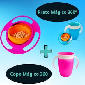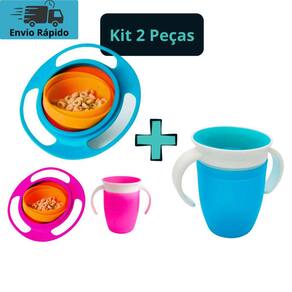 Kit Refeição Bebê Prato Mágico 360 Bebê e Copo Infantil Mágico Bebê com Tampa Silicone Antivazamento