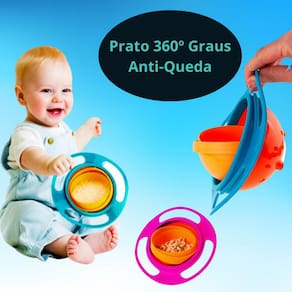 Seu filho(a) é muito agitado na hora de comer? Fica pegando o prato na mão e derrubando toda a comida pela cozinha? Não passe mais por esses desafios! Com sistema orbital projetado para girar 360º graus, o lado aberto fica sempre para cima, mantendo o conteúdo dentro da tigela, sem jamais derrubar o alimento!