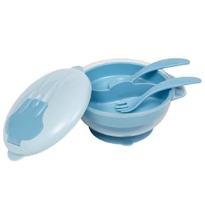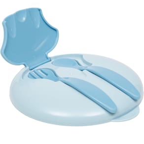 Talheres Inclusos: Inclui garfo e colher adaptados para mãos pequenas, promovendo a independência nas refeições.