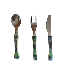 1 - Prato raso - 17 cm 1 - Prato fundo - 16 cm - 380 ml 1 - Garrafa 500 ml podem ir um de varios modelos 1 - Caneca divertida que compoe em 3 faixas - 360 ml 1 - Garfo 1 - Colher 1 - Faca com serrilha