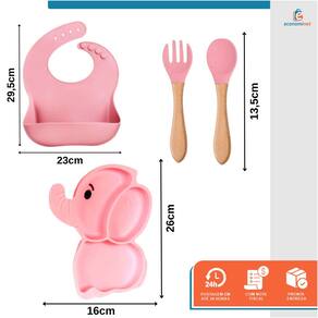 INFORMAÇÕES ADICIONAIS DIMENSÕES, PESO E CAPACIDADE Material: Silicone de qualidade alimentar Medidas babador: 29,5cm (altura) x 23cm (largura)) Medidas talher: 13,5cm (altura) Medidas prato: 26cm (altura) x 16cm (largura) Idade recomendada: +6 meses Marca: Baby Style Ref.: 5959059