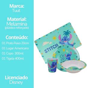 Jogo Refeição Infantil Melamina Stitch Disney 4 Peças