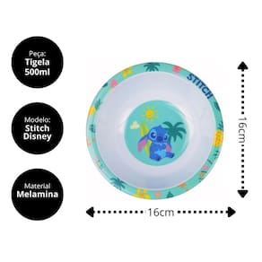 Jogo Refeição Infantil Melamina Stitch Disney 6 Peças
